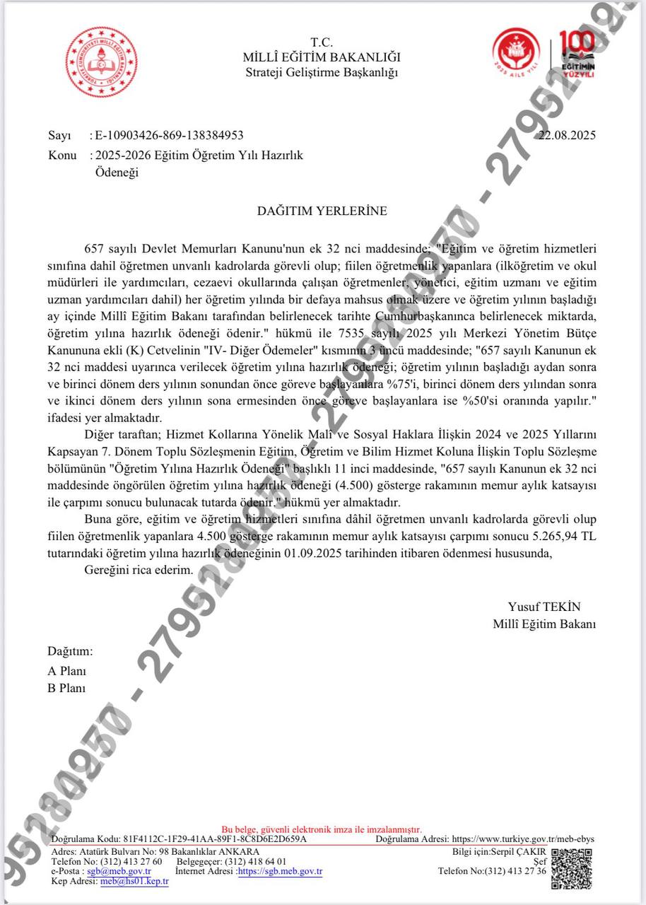 MEB’den “2025-2026 Eğitim Öğretim Yılı Hazırlık Ödeneği” Yazısı