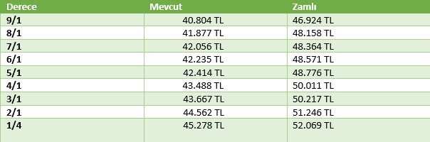 Derecelere Göre Maaş Tablosu: