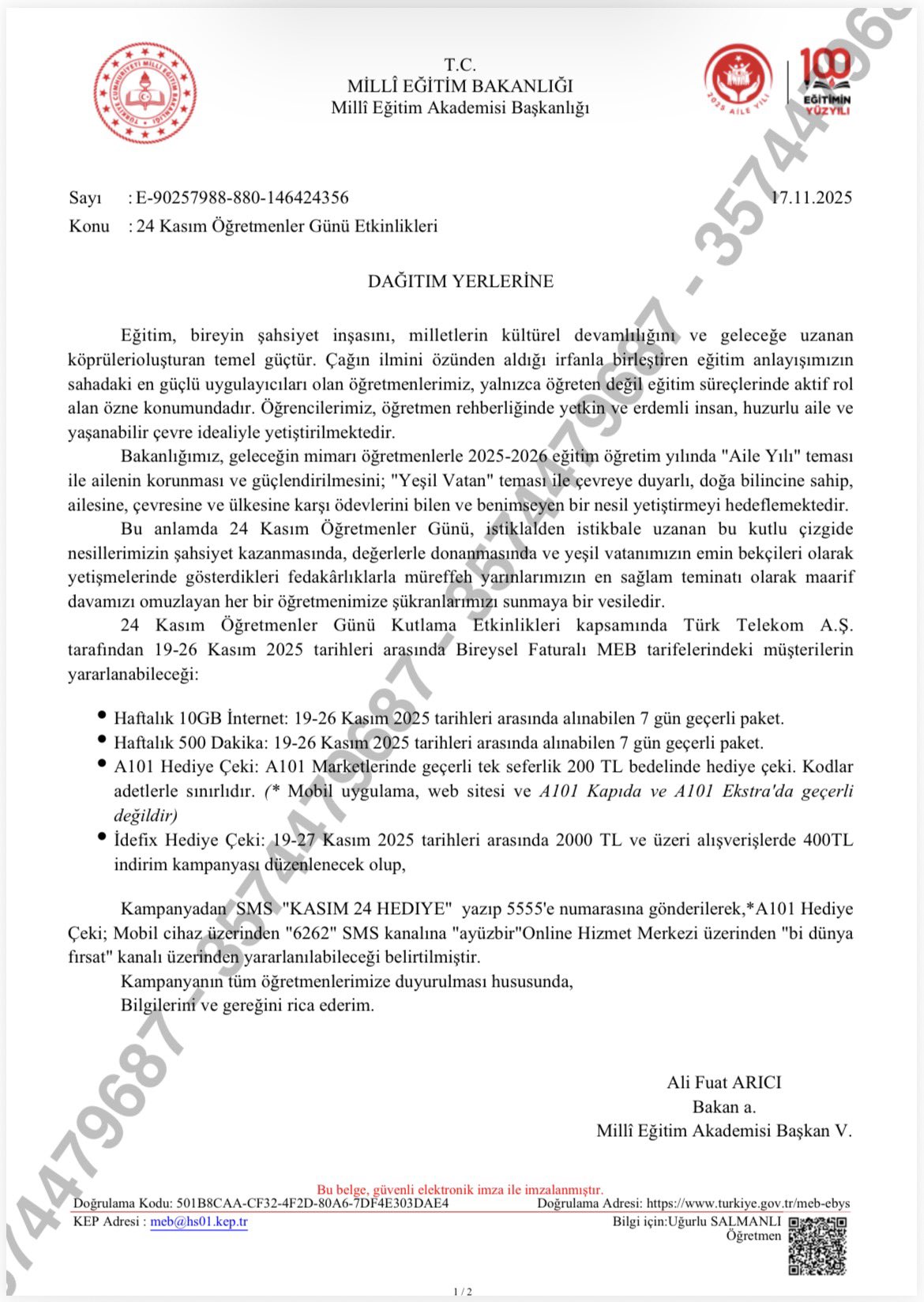 24 Kasımda öğretmenler için yapılan kampanyalar