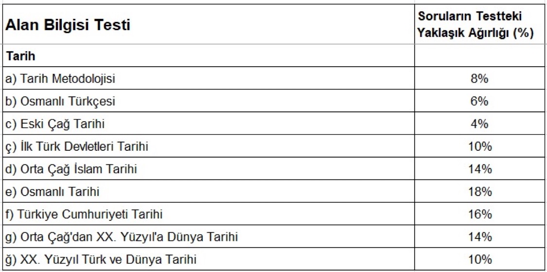 ÖABT Tarih konu dağılımları