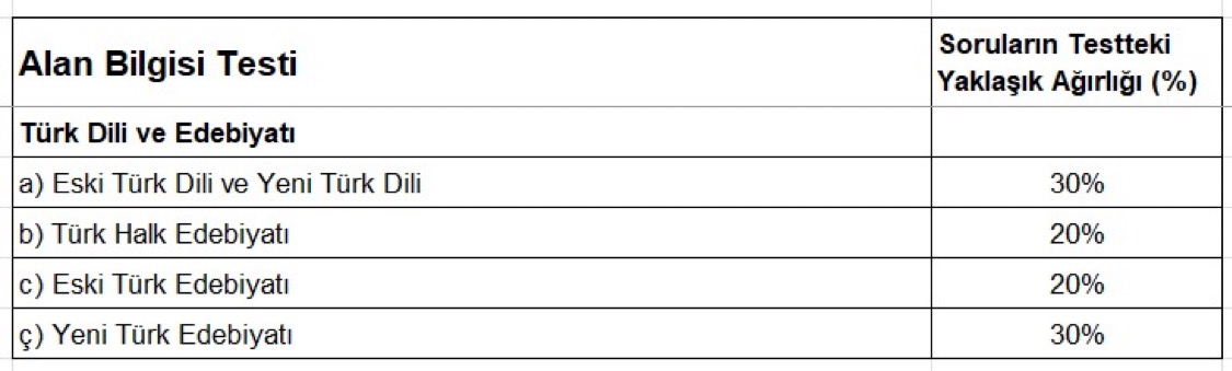 ÖABT Türk Dili ve Edebiyatı konu dağılımları
