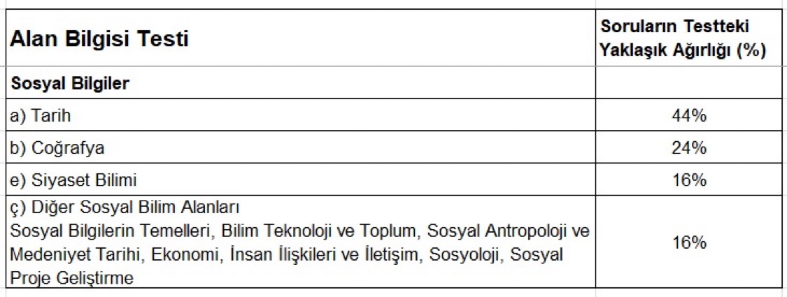 ÖABT'de Sosyal Bilgiler için konu dağılımları 2025